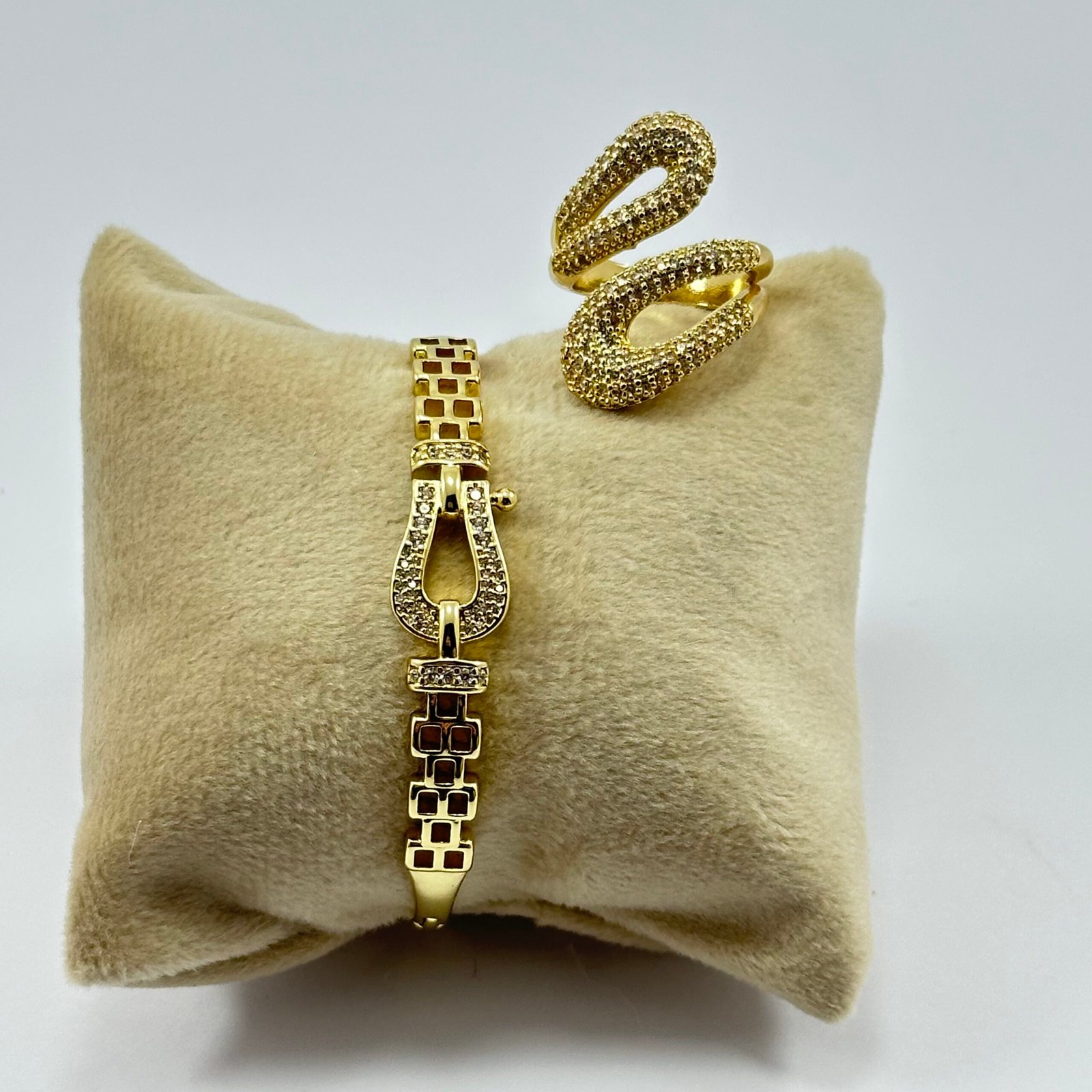 سوار + خاتم بتصميم بيضاوي مزدوج مرصّع بتفاصيل لامعة